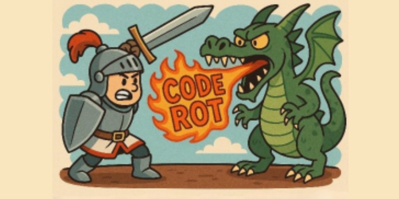 Think of code rot as code that has been stuck in time. The world around it is still moving forward with innovations, enhancements, and features. Still, the code rot is stuck in the past, not getting security updates, performance improvements, or any sort of modernization.