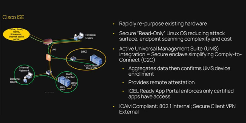 IGEL announced the successful conclusion of a joint effort with Asc3nd Technologies Group (ATG), Cisco, and the National Defense University (NDU)[1], implementing a repeatable, standards-based architecture that enables rapid Comply-to-Connect (C2C) and Zero Trust compliance for the U.S. Department of War (DoW).